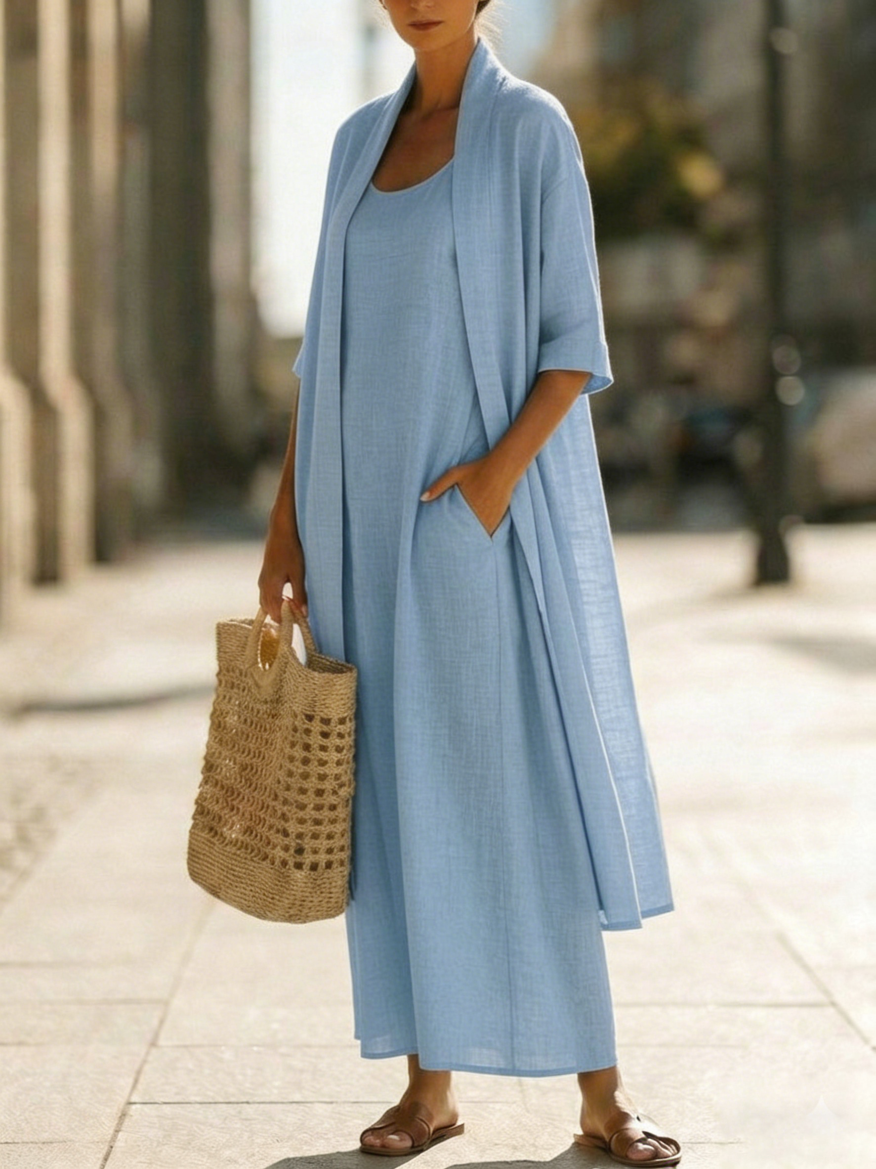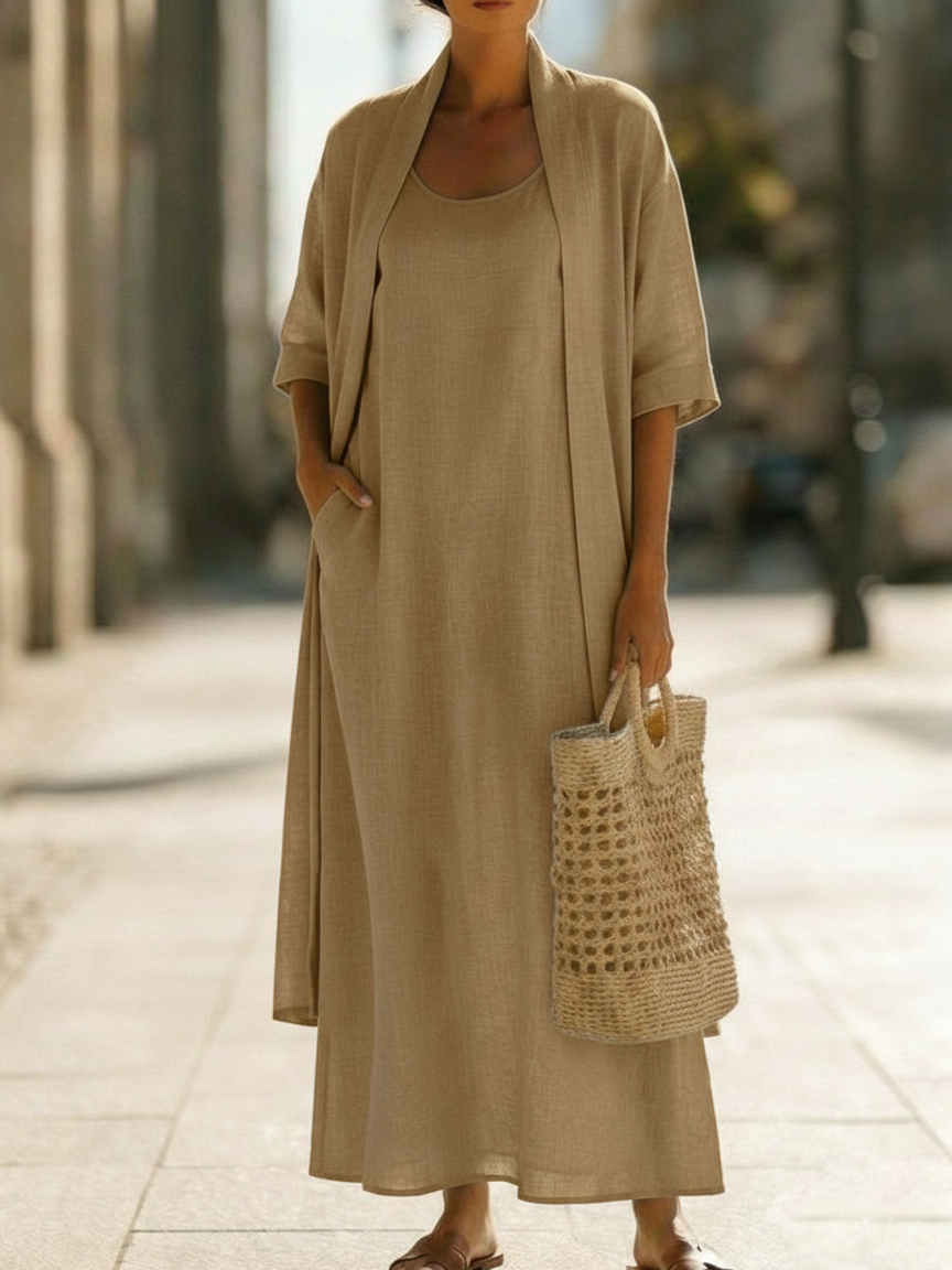This Minimalist Linen-cotton Two-piece Set is designed for women who seek comfort without sacrificing style, allowing you to enjoy a relaxed and carefree wearing experience.